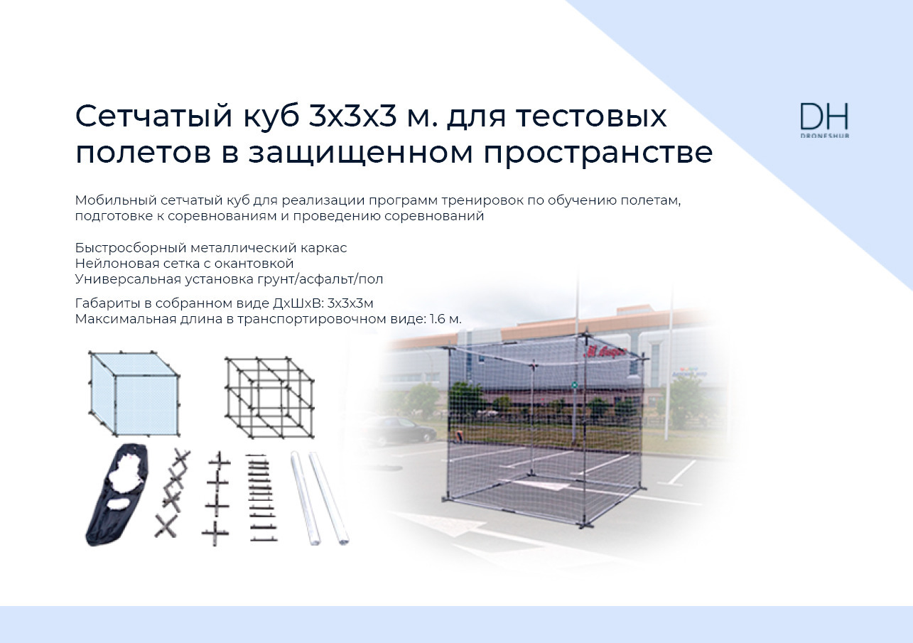 - 1x Сетчатый куб 3х3х3 м. для тестовых полетов в защищенном пространстве