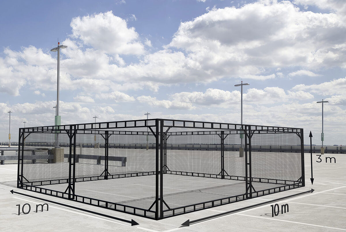Полетная зона 10х10х3 м огражденная защитной сеткой