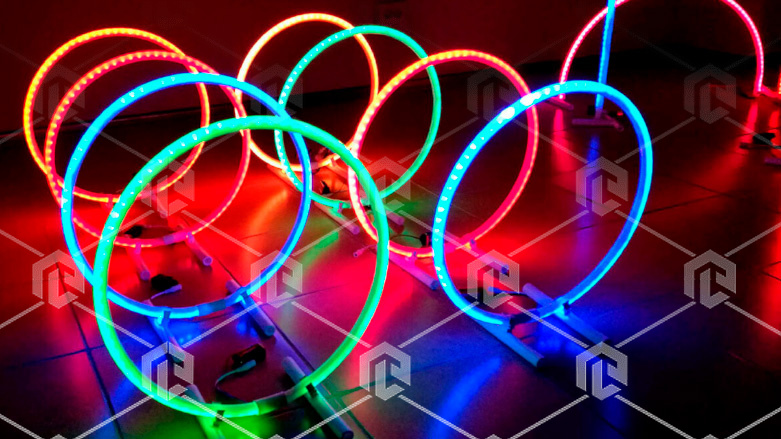 Трасса для дрон рейсинга типа «Tiny whoop», предназначена для проведения заездов внутри помещений. Позволяет улучшить навыки управления дроном. Возможно исполнение со светящимися элементами.