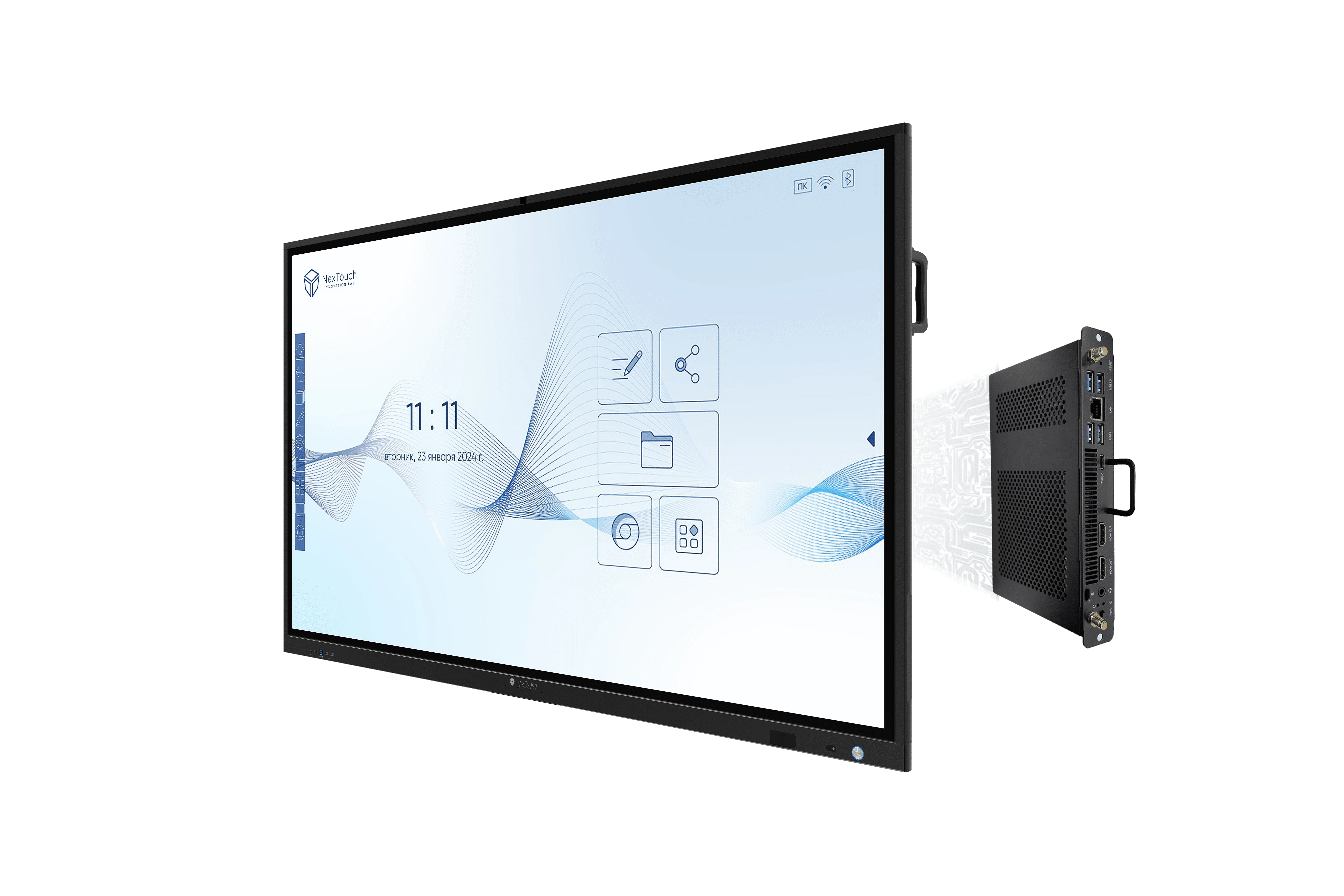 Вычислительный модуль: процессор Intel Core i5, DDR4 8Гб, SSD 256Гб, Windows/Linux, динамики (2х16Вт), встроенная камера (13Мп), встроенные микрофоны (6 шт.), встроенный сканер отпечатков (опционально, с артикулом IFCKV6INT75).