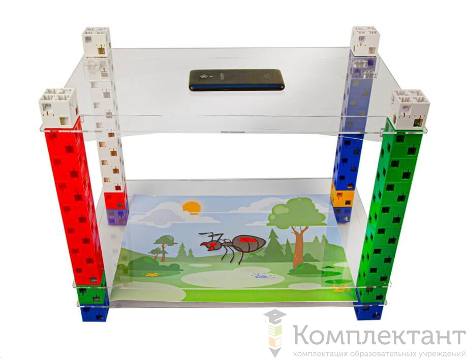 Особенностью мультлаборатории является возможность трансформировать съемочную площадку под творческие задачи оператора. Это достигается использованием в качестве строительного материала пластиковых кубиков со специальным креплением, входящих во множество наборов, выпускаемых нашей компанией. Данное решение допускает широкое применение элементов набора Академия Наураши «Курс логики базовый» (30 элементов) или набора Академия Наураши «Курс логики базовый» (60 элементов) для создания подвижных платформ. Такие технологии существенно расширяют возможности реализации эффектов движения в кадре.