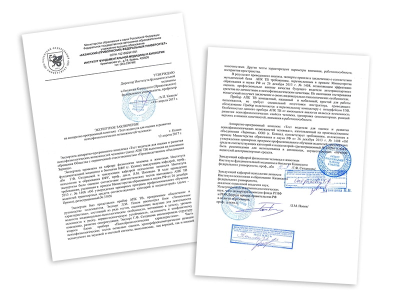 Аппаратно-программный комплекс имеет экспертное заключение специалистов кафедры психофизиологии человека Института фундаментальной медицины Приволжского федерального университета.