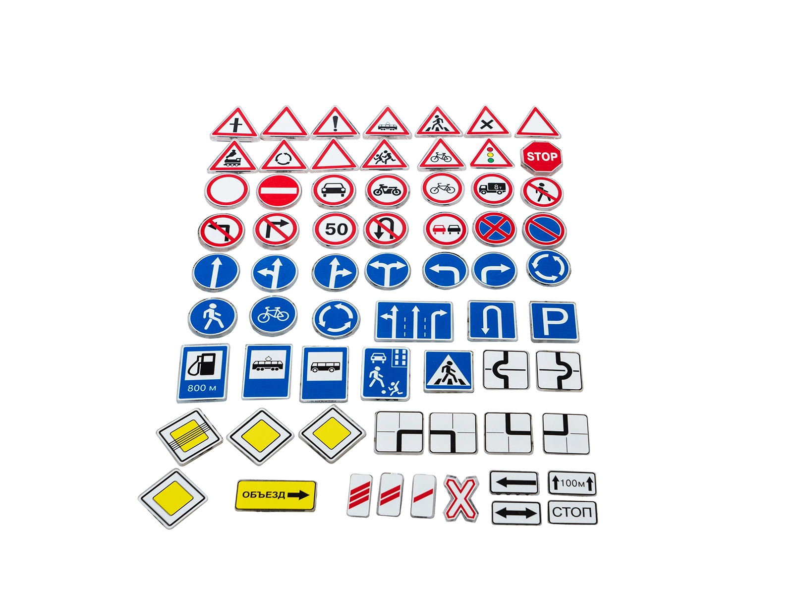 Комплект тематических магнитов предназначен для моделирования на магнитно-маркерных досках различных дорожных ситуаций с учетом значений дорожных знаков и наглядной демонстрации обучающимся правил дорожного движения.