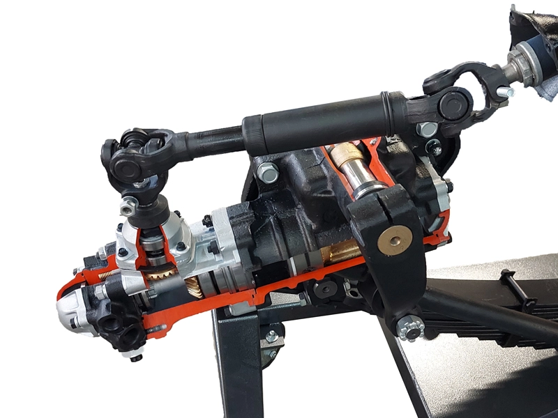 - Передняя подвеска и рулевой механизм в разрезе грузового автомобиля марки КАМАЗ.