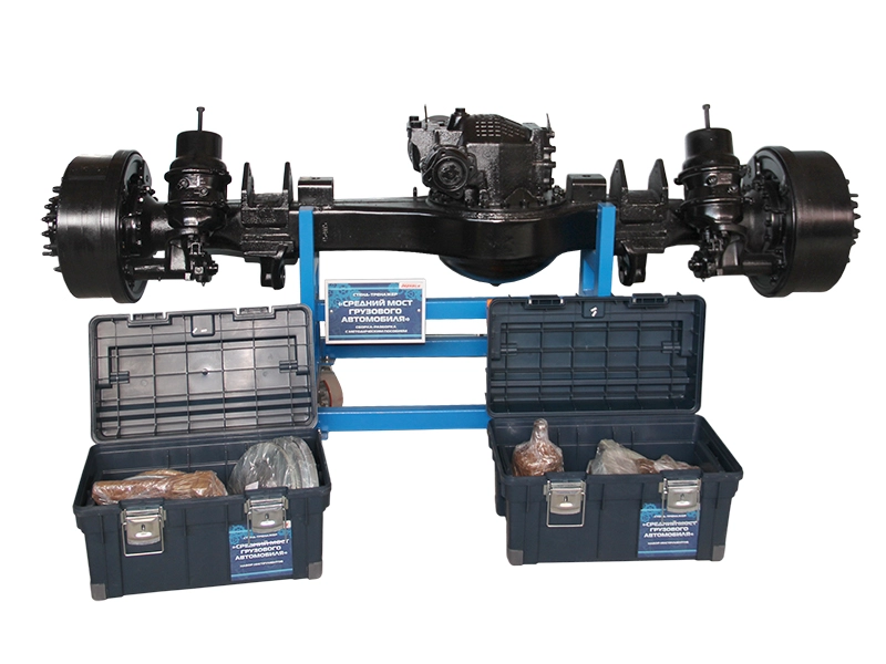 Учебный комплект по разборке и сборке среднего моста грузового автомобиля предназначен для проведения практических работ по изучению конструкции, принципов функционирования узлов и агрегатов грузовых автомобилей, а также формированию первоначальных навыков по диагностированию, техническому обслуживанию и ремонту автомобиля при изучении курсов "Устройство автомобильной техники", "Эксплуатация автомобильной техники", "Конструкция и расчет автомобильной техники", "Техническая эксплуатация и ремонт автомобиля".