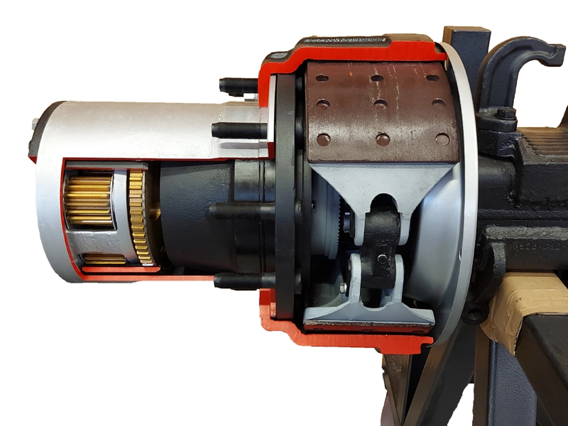 - Задний мост в сборе с тормозными механизмами и фрагментом карданной передачи в разрезе грузового автомобиля КАМАЗ.