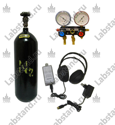 Комплект предназначен для опрессовки собранного трубного контура и проверки его герметичности. Контроль герметичности и поиск утечек осуществляются ультразвуковым течеискателем или обмыливанием. Комплект включает: – баллон для азота; – редукционный клапан; – ультразвуковой течеискатель.