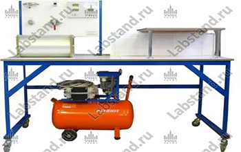 Стенд предназначен для изучения истечения воздуха из ресивера через различные отверстия, насадки и сопла и определения коэффициентов сопротивления, расхода. Течение дозвуковое с выходом на критический режим. Состоит из компрессора, создающего запас воздуха в ресивере высокого давления объемом 100л, рабочего ресивера объемом 10 л с системой сменных насадков и сопел (отверстие с острой кромкой, отверстие со скругленной кромкой, внутренний цилиндрический насадок, внешний цилиндрический, коноидальный насадок, конический сходящийся, конический расходящийся). Расход воздуха обеспечивается компрессорной станцией с производительностью 200 л/мин, рабочее давление воздуха 0,6 МПа. Измеряемые величины расходов из рабочего ресивера 5…200 л/мин. Давление в рабочем ресивере поддерживается системой регулирования в пределах 0,02…0,2 МПа. Истечение происходит в окружающую среду. Регистрация параметров с помощью системы сбора данных и компьютера: температура и давление в ресивере высокого давления и в рабочем ресивере
