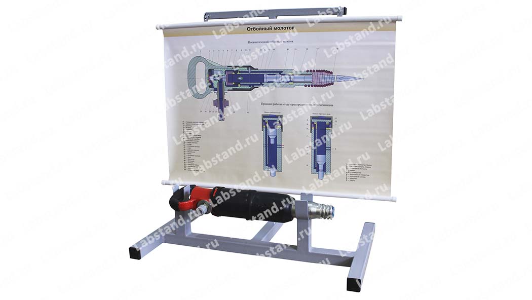 Назначение: Стенд-тренажер предназначен для освоения принципа действия пневматических отбойных молотков, а также выработки навыков по эффективной эксплуатации и обслуживанию устройств подобного типа.
