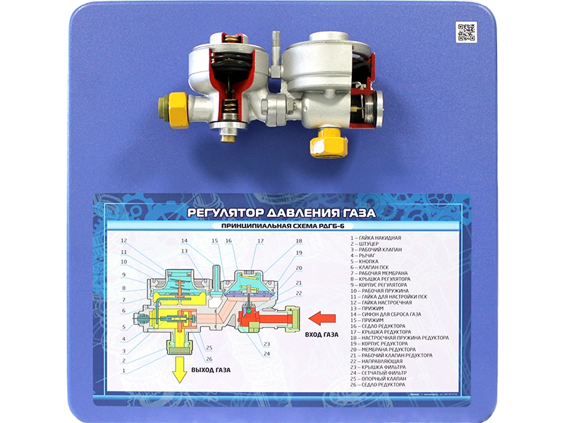 Стенд "Регулятор давления газа РДГ6-6" с натурным образцом в разрезе