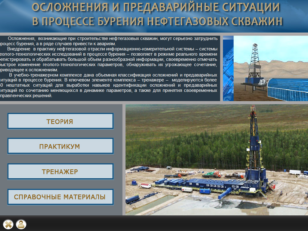 Интерактивный тренажер имитирует 32 нештатные ситуации: предаварийные ситуации и осложнения, которые возникают в процессе бурения. Он демонстрирует характерные для каждой ситуации графические зависимости 19 параметров бурения во времени и показывает детальные анимированные иллюстрации происходящего в скважине. Это позволяет обучающимся отработать навыки быстрой идентификации сложившегося положения и оперативной выдачи рекомендаций по исправлению ситуации.