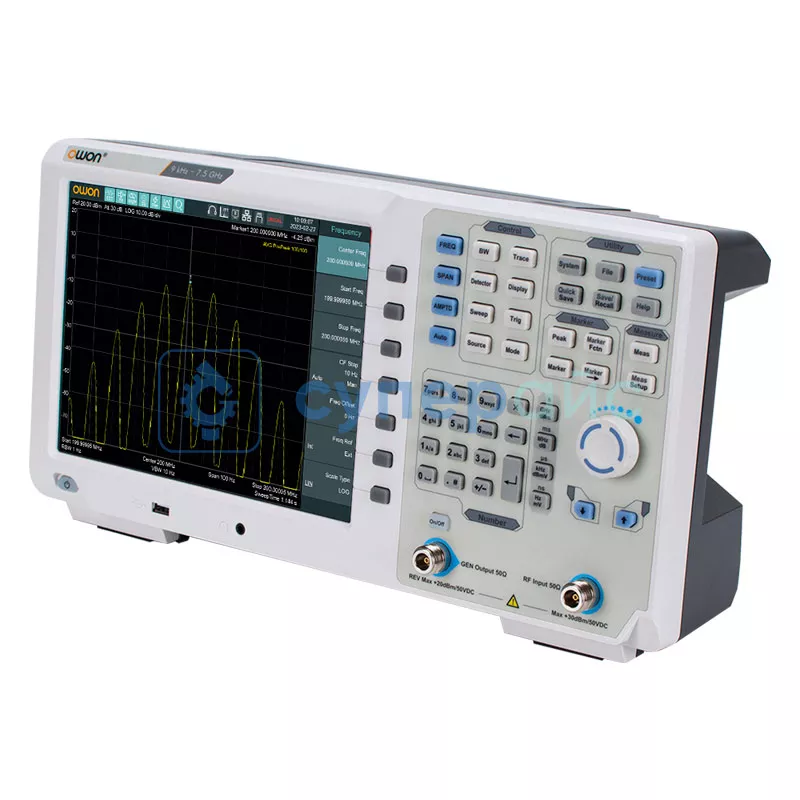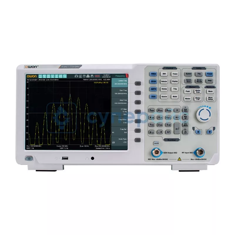 - Гарантирует точное измерение спектра в частотном диапазоне от 9 кГц до 7.5 ГГц, что делает его выбором для работы с различными сигналами.