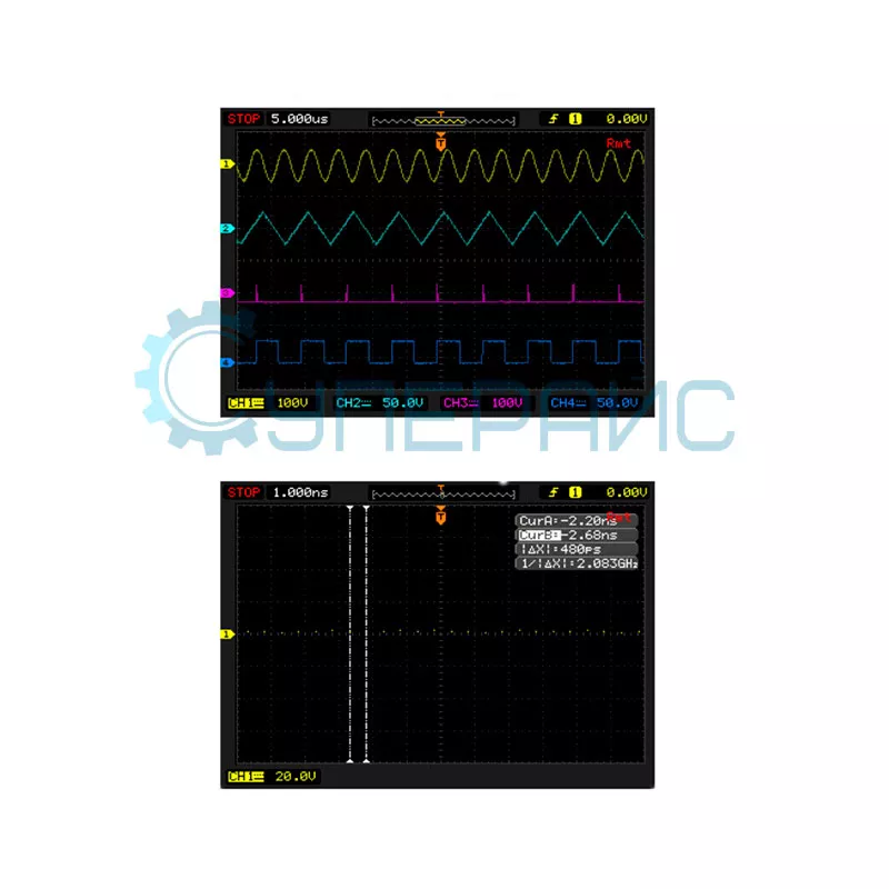 Курсорные измерения | ручные: разность напряжений между курсорами ΔV разница во времени между курсорами ΔT трассировка: напряжение и время по точкам сигнала 1/ΔT |
