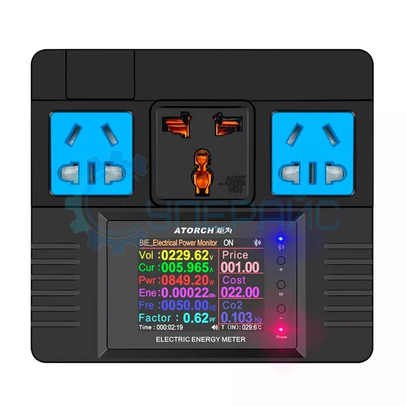 Отображаемые параметры | переменное напряжение и ток, мгновенная мощность, частота, потребляемая энергия, коэффициент мощности |