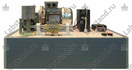 Стенд состоит из основания с несущей панелью, на которой размещен исследуемый кривошипно-кулисного механизм. На вал приводного мотор-редуктора с регулируемой частотой вращения, устанавлен кривошип. Кривошип также соединен с кулисой, совершающей поступательное движение. Стенд обеспечивает возможность задания различных сил сопротивления движению кулисы (за счет регулируемого поджима фрикционных вкладышей) и установки дополнительных масс на кулису для изменения ее инерции. Система измерения позволяет определять приводной крутящий момент на кривошипе, частоту вращения кривошипа, силу сопротивления движению кулисы