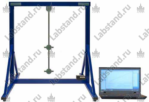Стенд представляет собой рамную конструкцию с габаритными размерами (д,г,в), не более 900х600х900 мм, выполненную из металлического профиля с полимерным окрашиванием. К рамной конструкции на подшипниках прикреплен первый стержень маятника, на втором конце стержня установлен подшипниковый узел и устройство для установки дополнительных масс. Из подшипникового узла выходит второй стержень маятника, на втором конце которого имеется возможность установки различных масс.