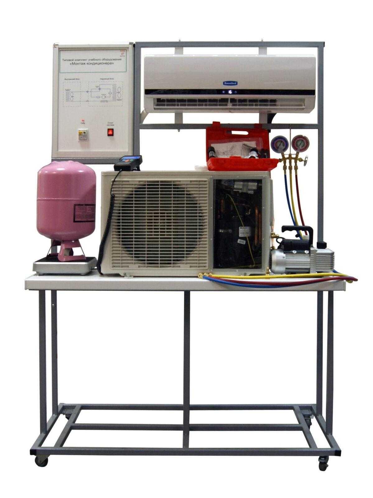 Лабораторный стенд «Монтаж кондиционера» предназначен для проведения практических и лабораторных работ по изучению трубной разводки сплит-систем кондиционирования воздуха и изучению процесса заправки холодильного контура.