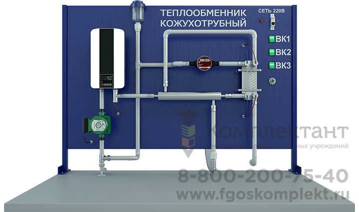 Лабораторная установка для испытания различных конструкций теплообменных аппаратов: кожухотрубный и пластинчатый. Изучайте принципы работы теплообмена с помощью современного оборудования, подходящего для образовательных целей.