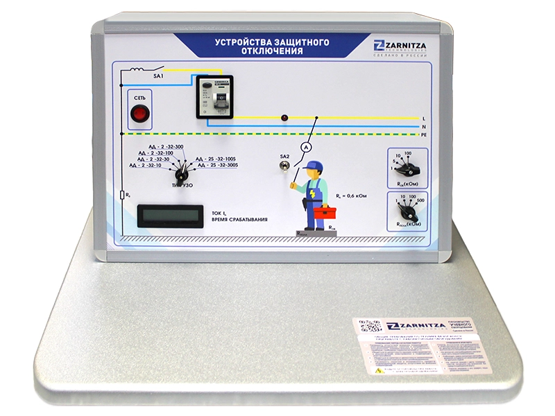 Комплект учебно-лабораторного оборудования "Устройства защитного отключения" предназначен для проведения лабораторно-практических занятий по дисциплине "Безопасность жизнедеятельности", позволяет исследовать время-токовые характеристики устройств защитного отключения дифференциального типа и оценить эффективность устройств защитного отключения (УЗО) для защиты человека от поражения электрическим током.