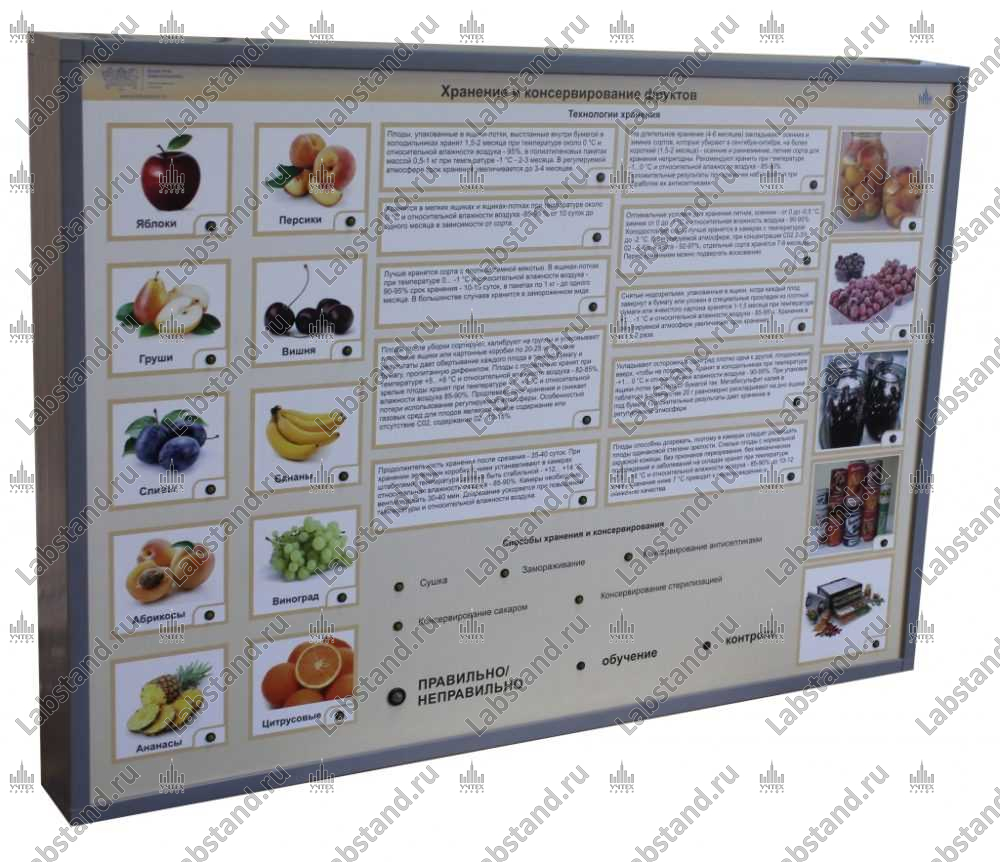 Назначение: Стенд-планшет предназначен для изучения процесса хранения и консервирования фруктов.