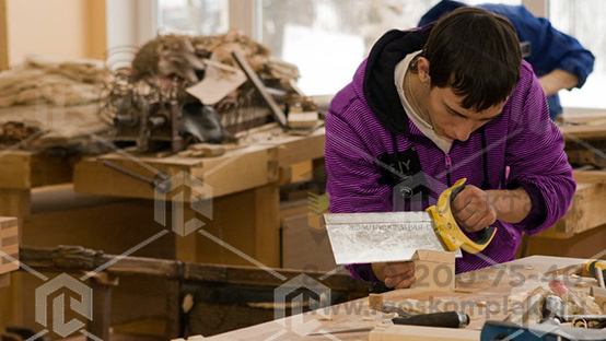 Мастерская предназначена для практического обучения столяров по изготовлению и монтажу строительных конструкций из дерева различного назначения.