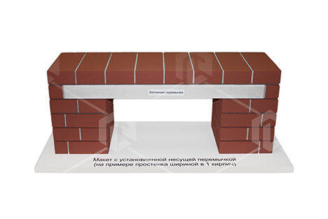 - Макет с установленной несущей перемычкой (на примере простенка шириной в 1 кирпич)