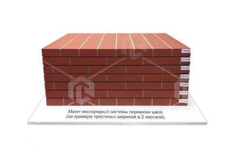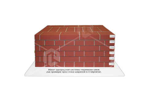 - Макет однорядной системы перевязки швов (на примере простенка шириной в 2 кирпича)