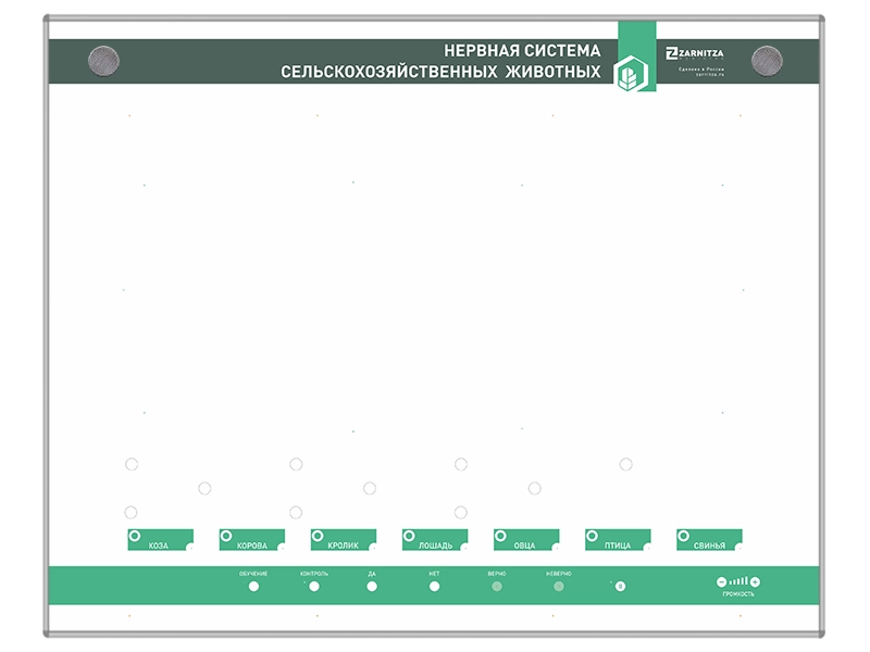 Электрифицированный стенд предназначен для приобретения и закрепления учащимися образовательных учреждений ветеринарного профиля базовых знаний о нервной системе сельскохозяйственных животных, а также проведения интерактивной проверки знаний.