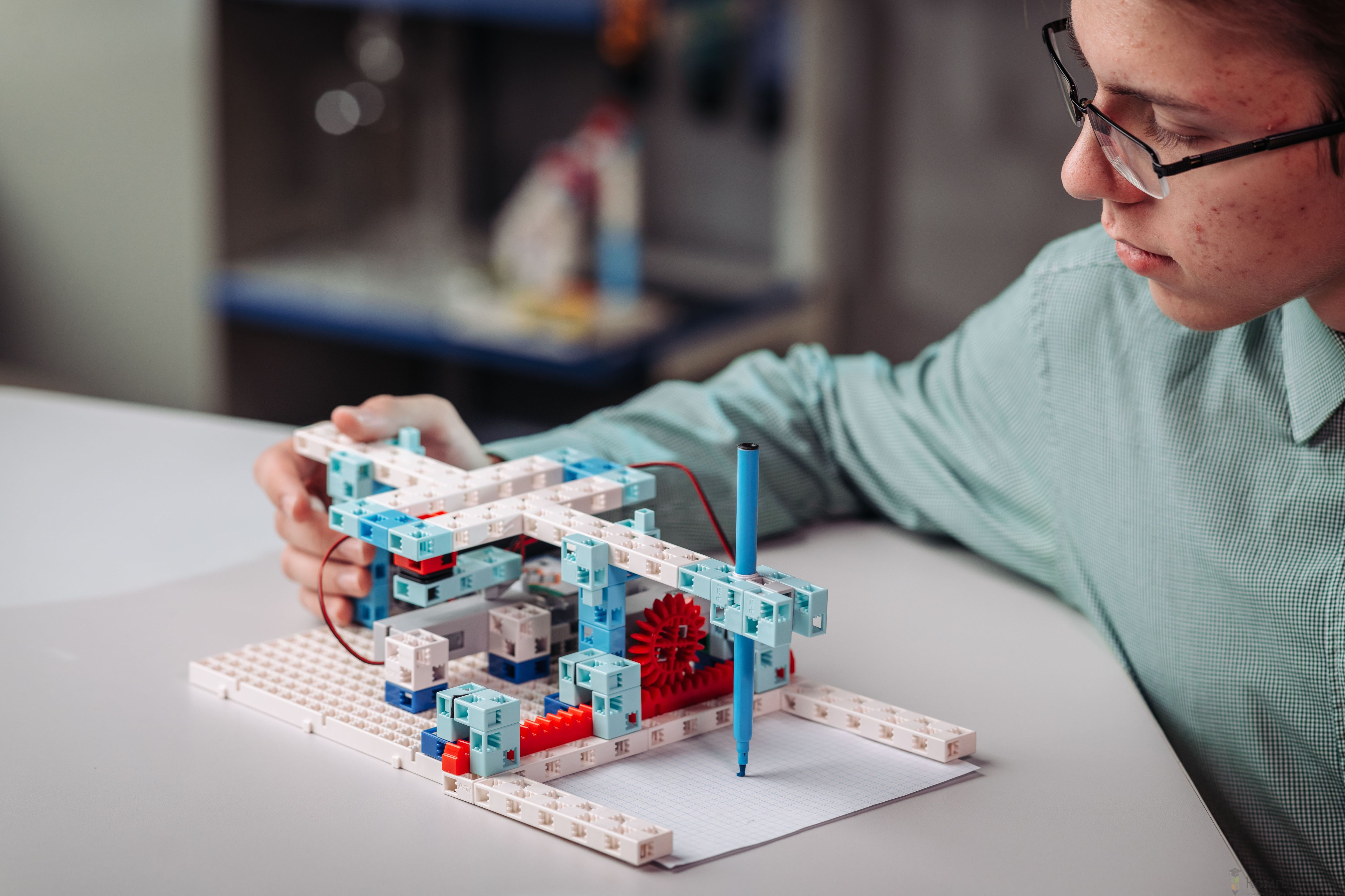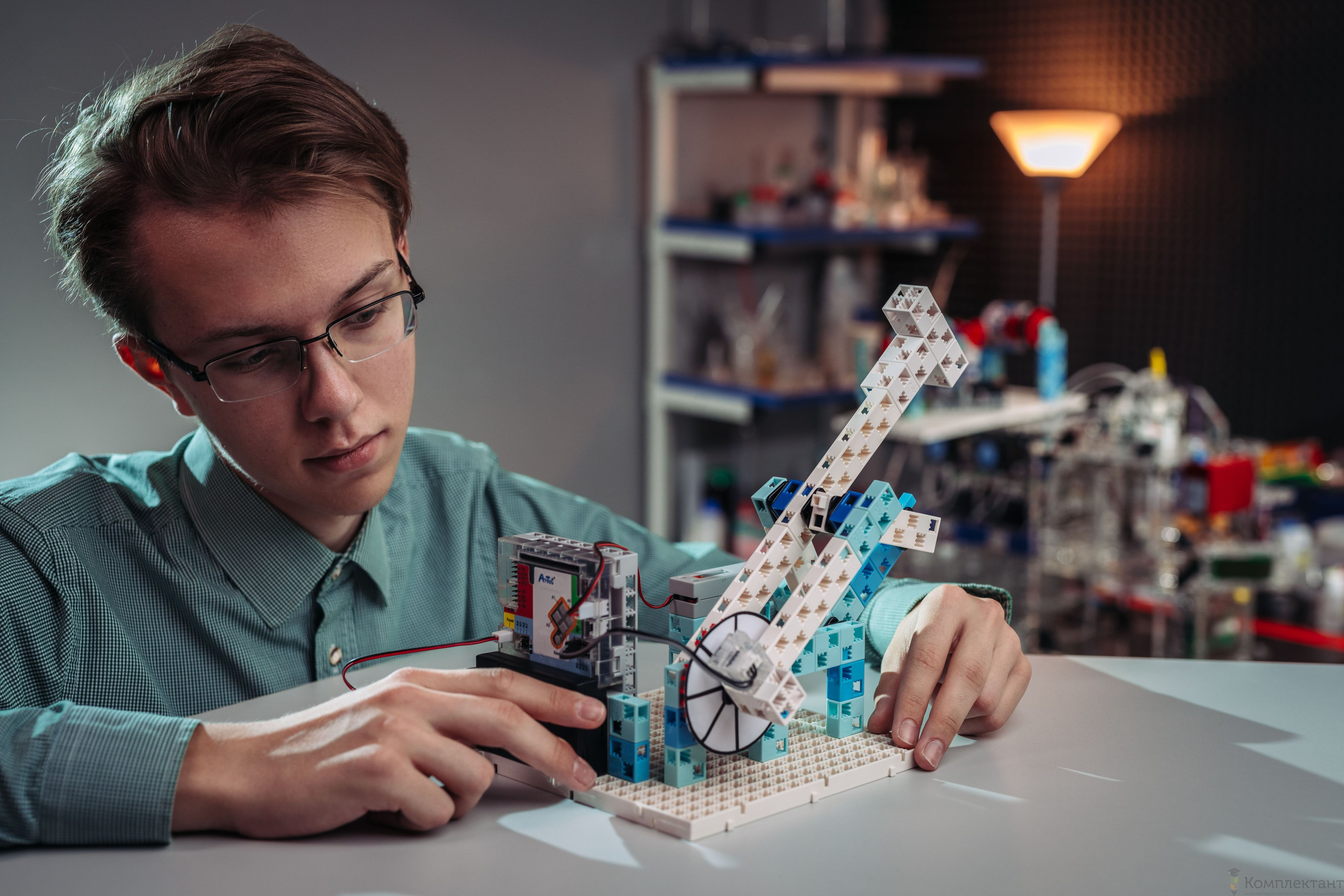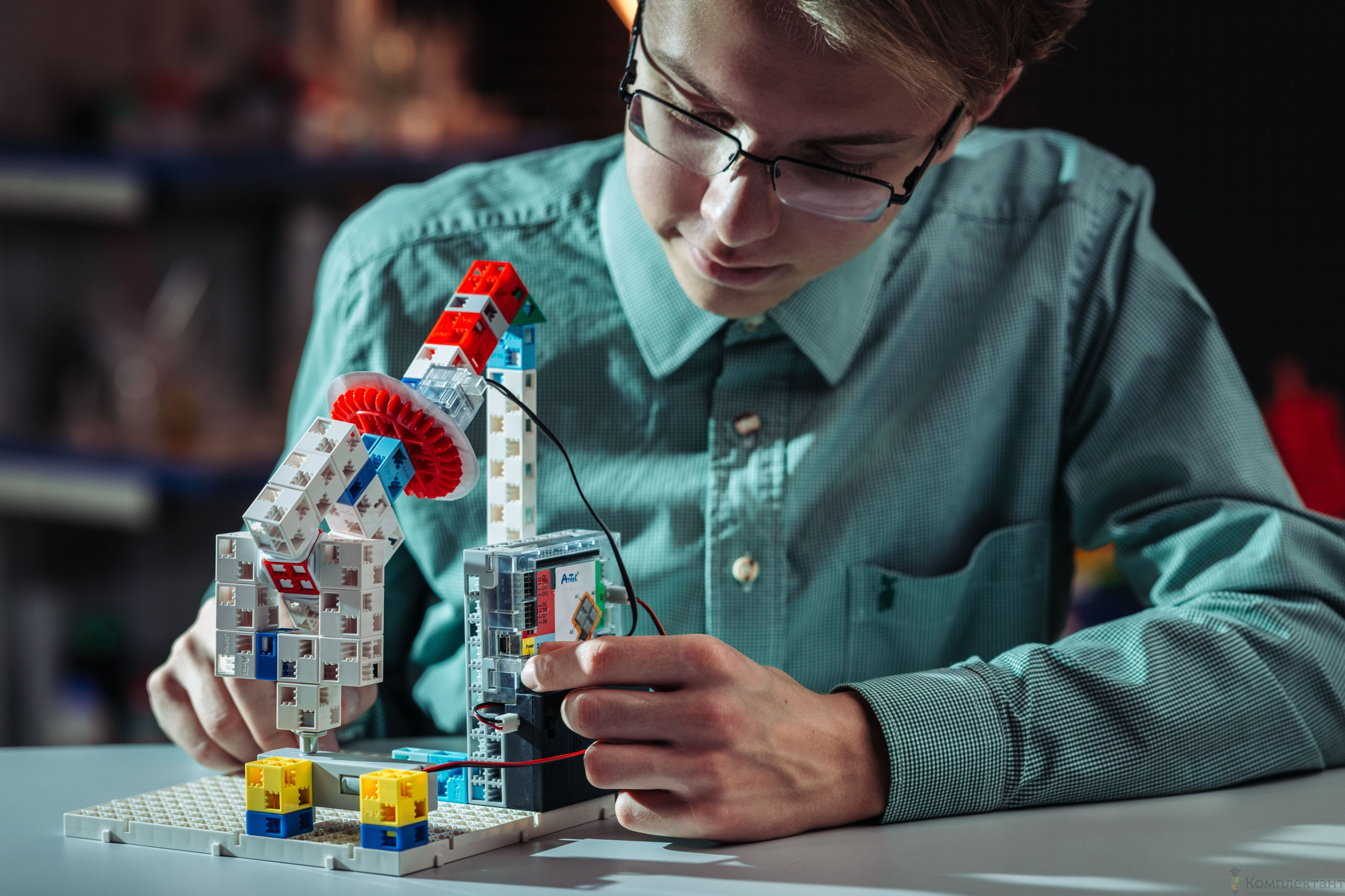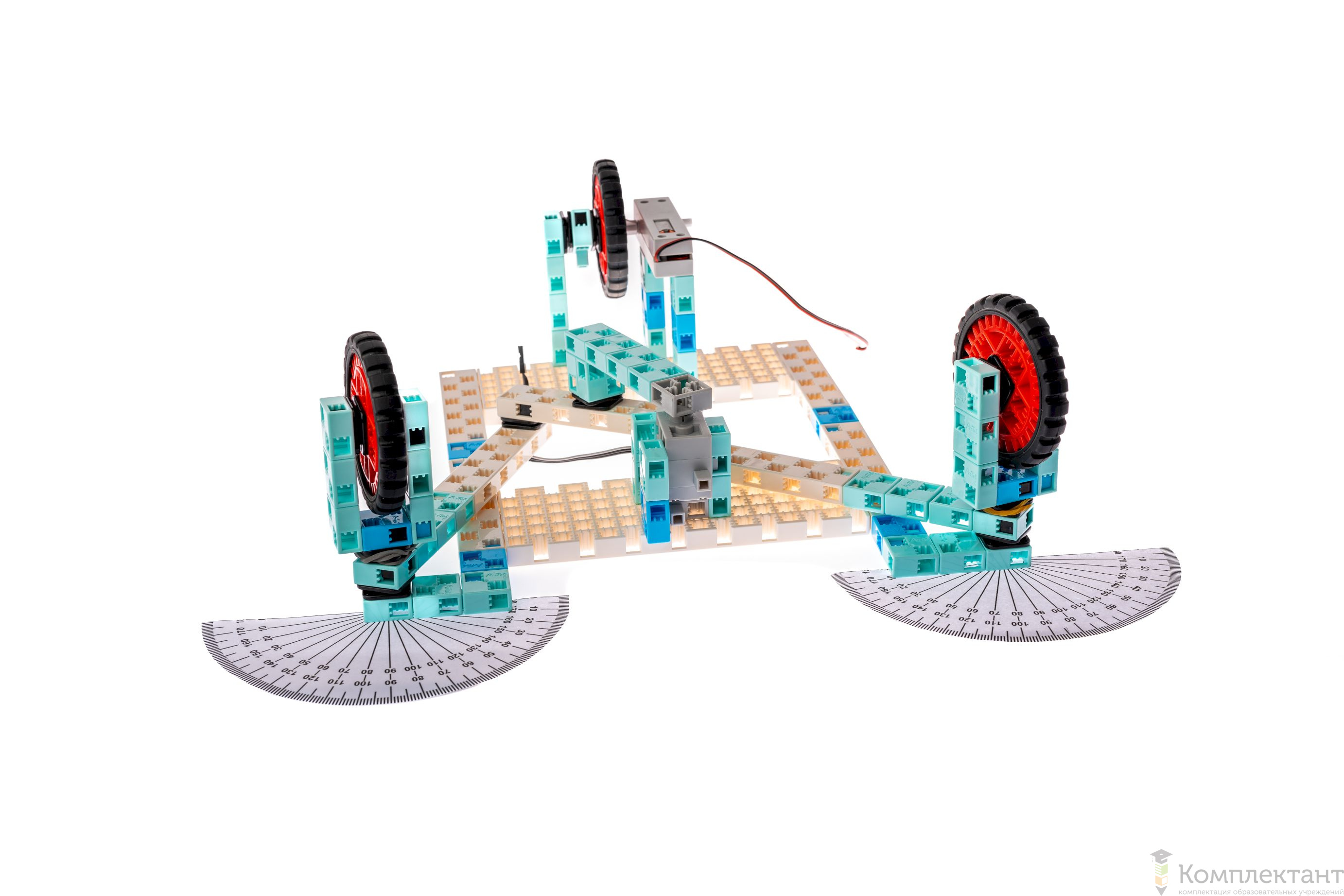 — Сборке действующих прототипов распространённых механизмов из универсальных, а не уникально специализированных деталей