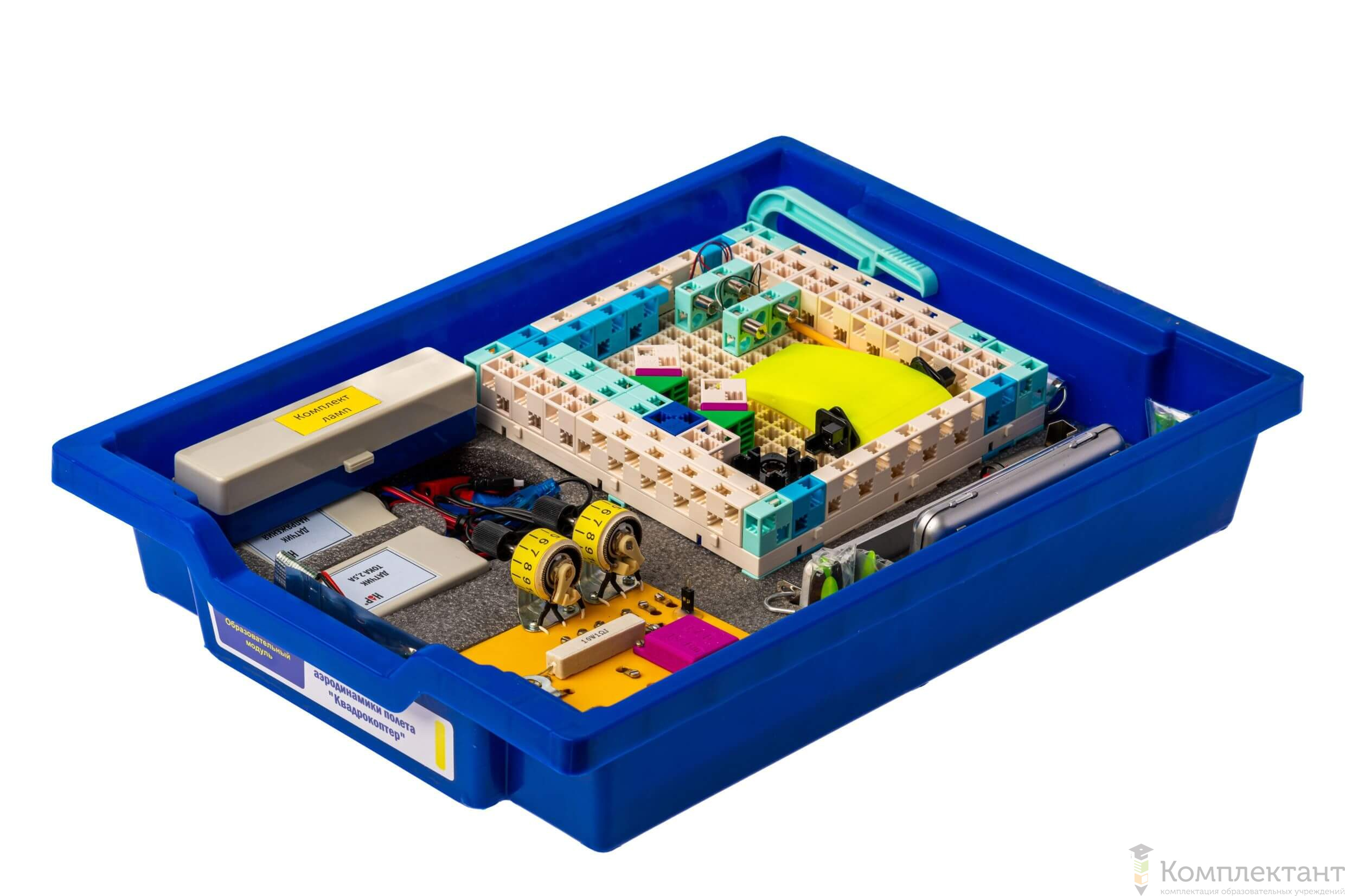 Набор предназначен для подробного ознакомления учащихся с основными понятиями аэродинамики на примере летательного аппарата вертолетной схемы, а также для обучения приемам программирования с применением датчиков и исполнительных механизмов.