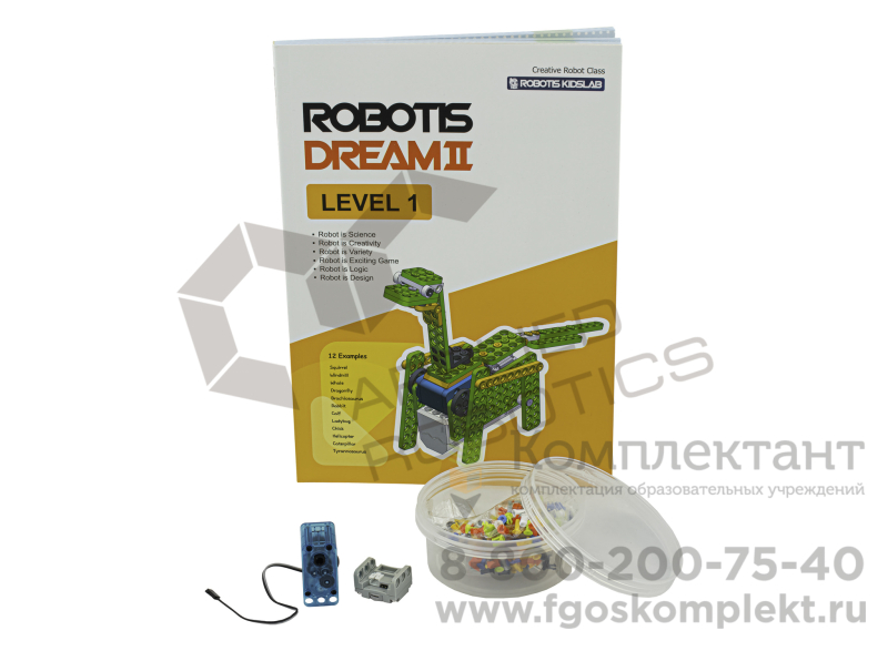 ROBOTIS DREAM II Level 1 - образовательный робототехнический набор, предназначенный для изучения основ робототехники, базовых принципов работы механизмов и основ кинематики и конструирования простейших подвижных моделей роботов, приводимых в движение электродвигателем. Набор Level 1, являющийся начальным комплектом обновленной серии ROBOTIS DREAM, позволяет учащимся познакомиться с основными принципами физики и электричества.
