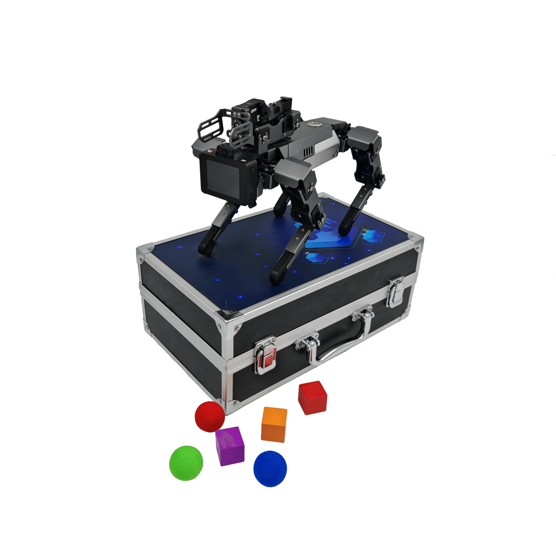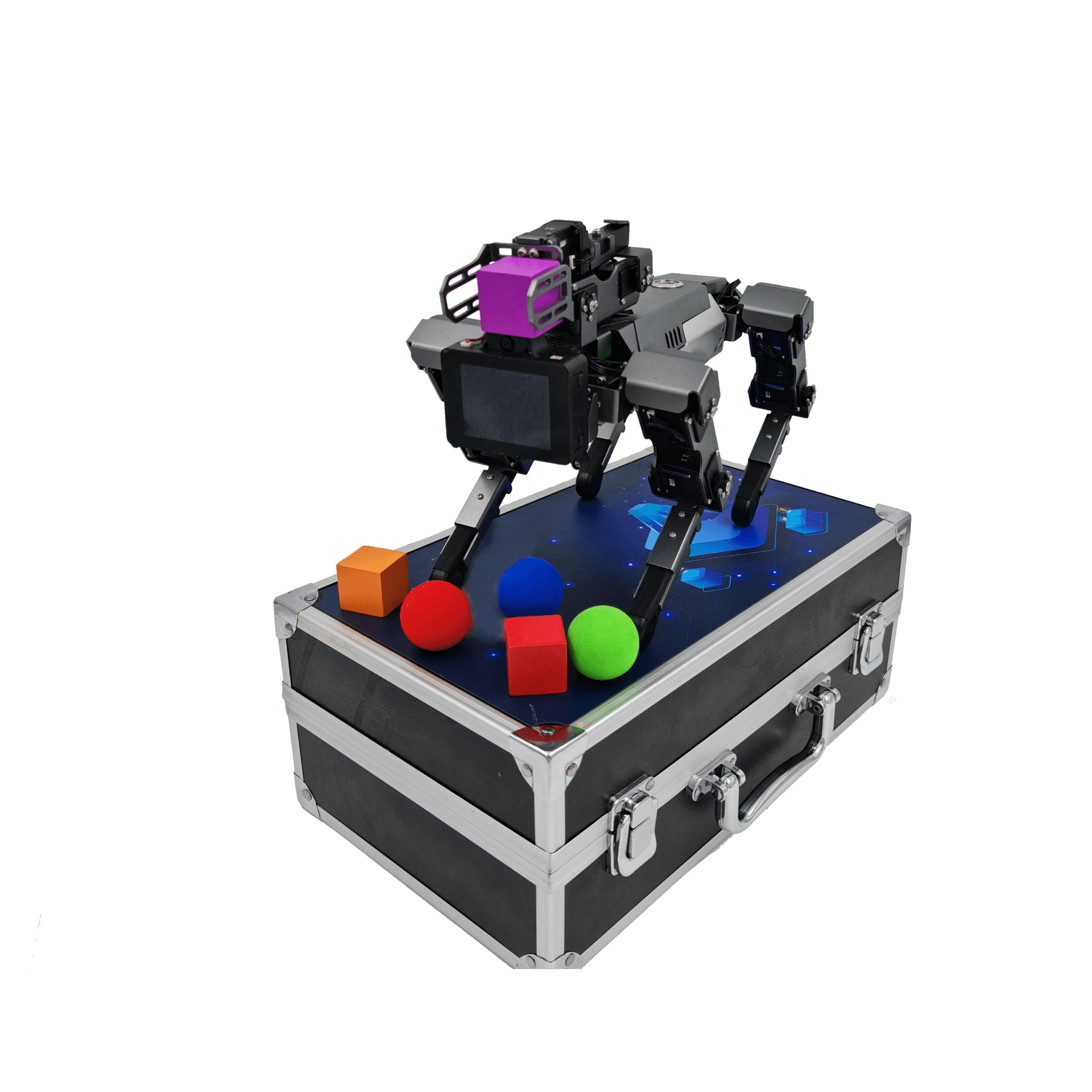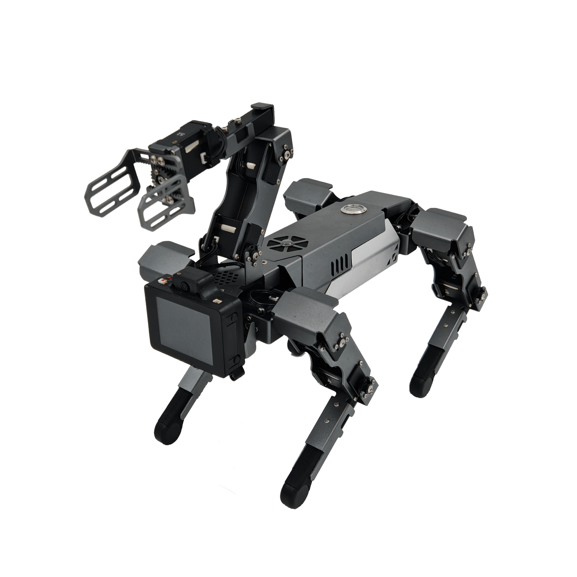 Робособака - это учебный настольный робот в корпусе из алюминия. Он имеет 12 серво моторов для реализации двигательных функций и 3 для захвата и перемещения предметов. На фронтальной части корпуса расположен 2,0-дюймовый ЖК дисплей разрешением 320x240 и встроенной камерой 2 мегапикселя. Также на корпусе находятся кнопка включения/выключения и интерфейсы для зарядного устройства и периферии. Основой для выполнения периферийных вычислительных приложений является контроллер Raspberry CM 4. Программирование робособаки осуществляется с помощью языков программирования Blocky и Python через специальное приложение в браузере компьютера. Модуль искусственного интеллекта предоставляет множество аппаратных функций, включая встроенный микрофон, динамик и камеру достаточную для обработки изображений и функций визуального распознавания. Робот имеет интерактивные кнопки для легкого программирования, а предустановленные модели ИИ обеспечивают распознавание жестов, лиц, эмоций, пола и возраста. Это позволяет роботу взаимодействовать с окружающей средой интеллектуальным и динамичным образом и обеспечивает простоту разработки приложений для реализации технологий искусственного интеллекта.