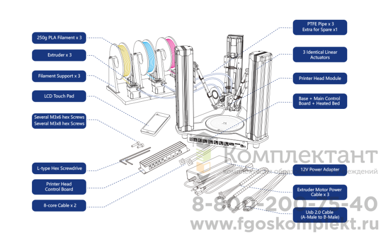 DOBOT Mooz 3Z - учебная модульная станция с технологией FDM печати DELTA 3D и тремя экструдерами для создания многоцветной печати.