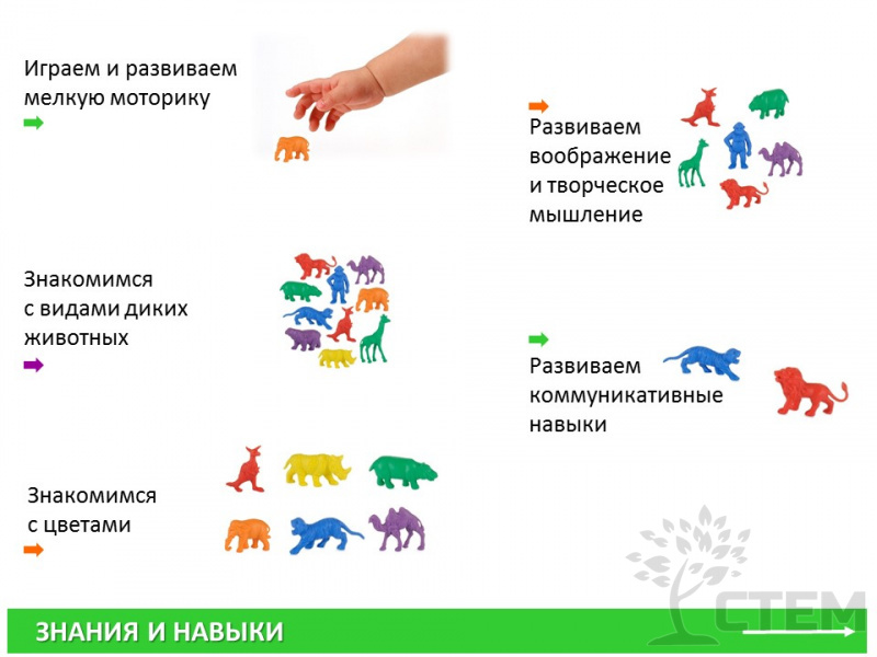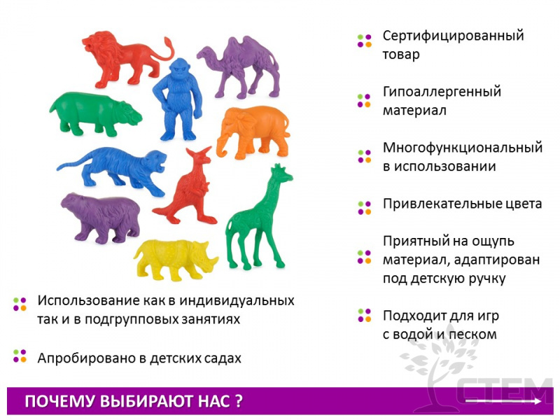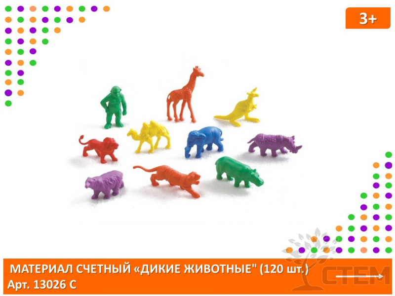 Материал счетный фигурки "Дикие животные" (120 шт., 10 видов, 6 цветов) – идеальный выбор для развития мелкой моторики и изучения окружающего мира. Игры с этими фигурками помогут детям познакомиться с разнообразием животного царства и улучшить навыки счета.