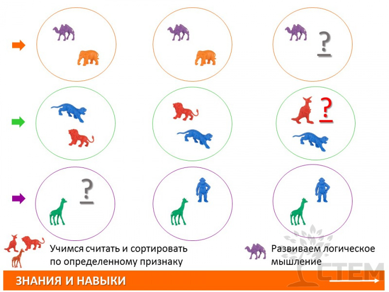 математики и решения задач. Обучение и запоминание достигается благодаря использованию на занятиях счетных материалов и введения соответствующей лексики. Достижения в области информационных технологий позволили перейти на электронное обучение, и вместо реальных предметов дети считают виртуальные. Однако, педагоги считают, что детям необходимо получать как тактильный физический опыт, играя с реальным счетным материалом, так и опыт с применением информационных технологий.