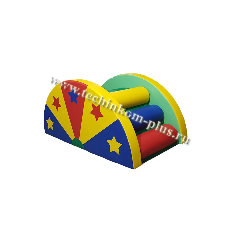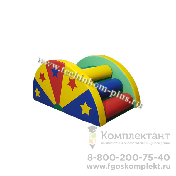 В комплект входит горка 125х50х50см и 2боковины, которые трансформируются в мат диаметром 130 см и толщиной 10 см.
