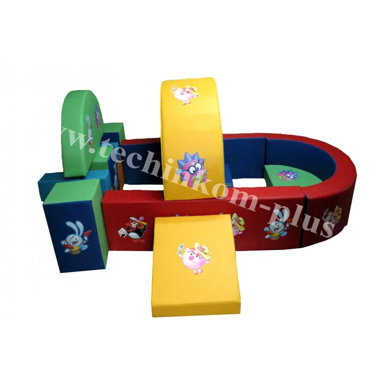 Брус 50*30*30 -4шт, Горка 50*50*30(10) -2 шт, Ступенька 40*40*40 -2 шт, П/кольцо 120*60*40(15)-2шт, Пластина 135*40*15 -2шт, Брусок 50*15*15 -2шт, 1/2 круга D-90, H-45*15-2 шт, Куб 30*30*30-2 шт.