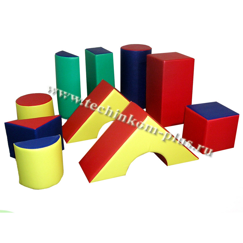 Комплектация: Планка 50*25*15-1шт, Цилиндр-h-25, d-25-1 шт, Цилиндр h-50, d-25-1шт, 1/2 цилиндра h-25,d-25-1шт, 1/2 цилиндра h-50, d-25-1шт, Брусок 50*25*25-1шт,треугольник 25*25*25-1 шт, Треугольная призма с вырезом 50*50*25-2шт, Куб 25*25*25-1 шт.
