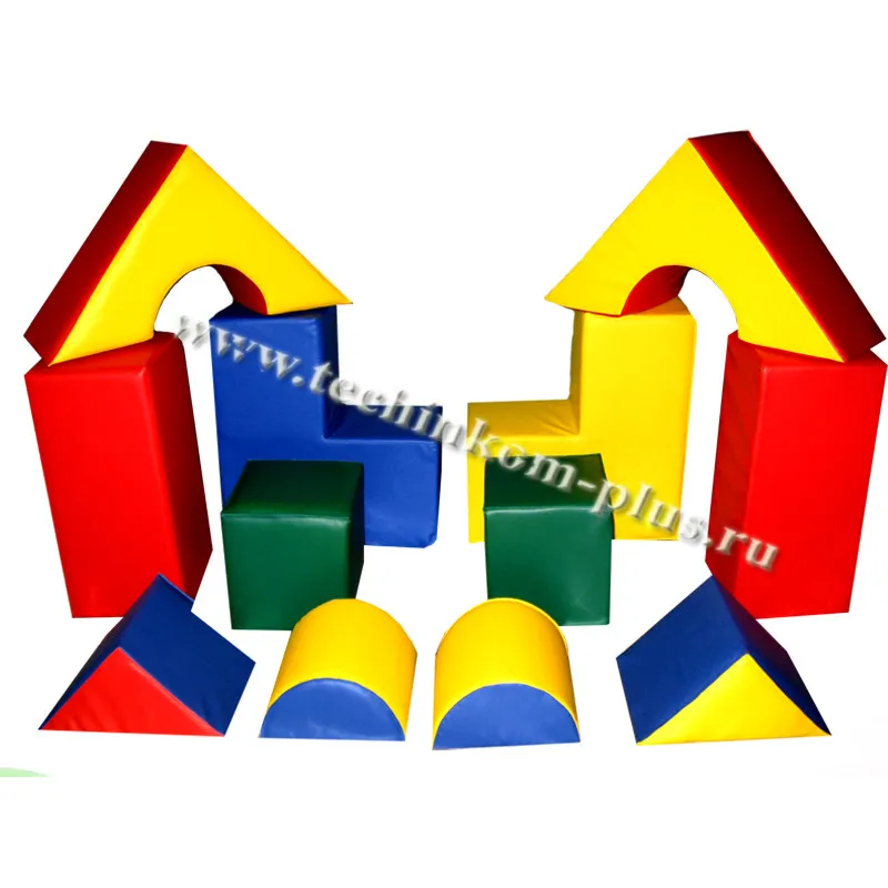 Комплектация: Куб 25*25*25-2шт, Брусок 50*25*25-2шт, Лесенка 25*50*25-2шт, 1/2 цилиндра 25*25 -2шт, Треугольник 25*25-2шт, Треугольная призма с вырезом 50*50*25-2шт.