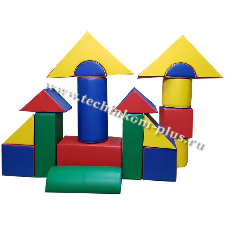 Комплектация: Планка 50*25*15-2шт, Цилиндр-h-25, d-25-2 шт, Цилиндр h-50, d-25-1шт, 1/2 цилиндра h-25,d-25-2шт, 1/2 цилиндра h-50, d-25-1шт, Брусок 50*25*25-1шт,треугольник 25*25*25-4 шт, Треугольная призма с вырезом 50*50*25-2шт, Куб 25*25*25-3 шт.