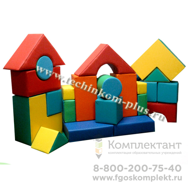 Куб 20*20-4шт, Мостик 40*20*20-2шт, Брусок 20*10*10-2шт, Брусок большой 40*20*20-2шт, Треугольник 20*20*20-2 шт, Матик 20*20*10-2 шт, Матик 40*40*10-2 шт, Цилиндр h-20, d-20- 2шт, Треугольная призма с вырезом 40*40*20-2 шт, Ступенька 40*40*20-2 шт