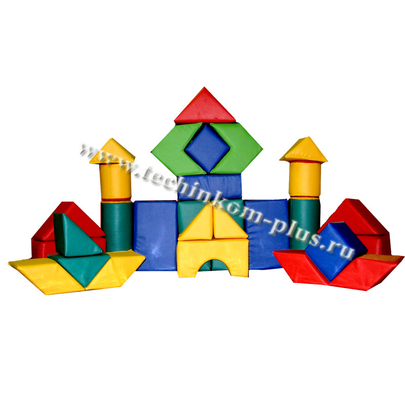 Комплектация: Треугольник 20*15-3шт, Треугольник 15*15-6шт, Ромб 15*15*15-4 шт, Мостик 30*15*15-3 шт, Цилиндр 15*15-2 шт, Цилиндр 30*15-2шт, Куб 15*15-6шт, Брусок 30*15*10-3шт, Шестигранник 20*30*15-2шт