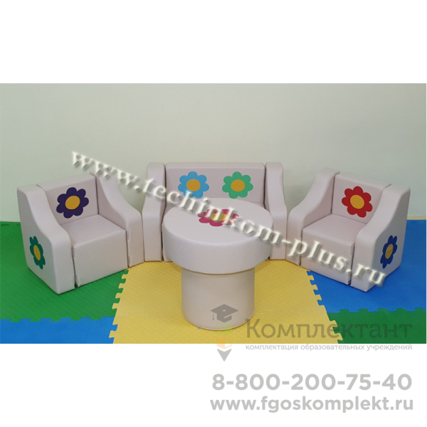 Комплектация: диван 80*40*50см -1 шт, кресло 50*40*50см - 2шт, столик 40*35см 1шт