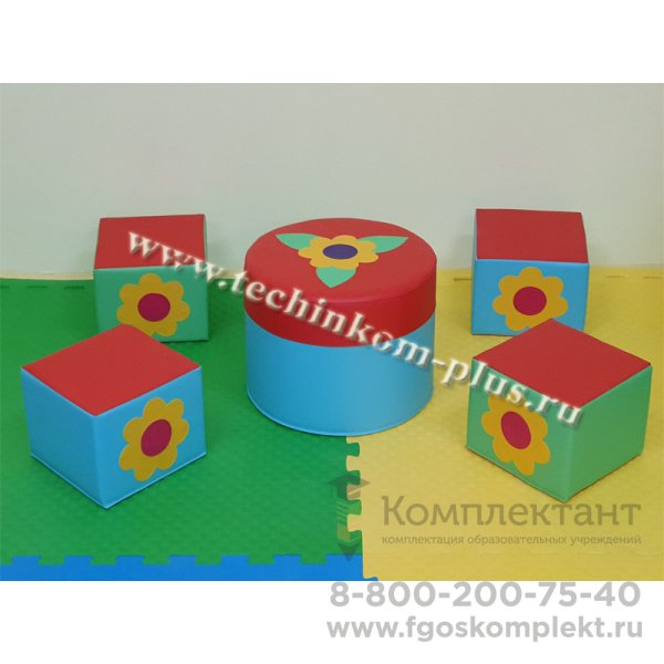 В комплекте: столик-пуфик (d = 40 см, h = 30 см) - 1 шт, банкетка-пуфик (25 х 25 х 20 см) - 4 шт.