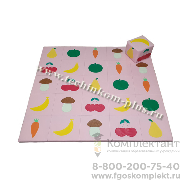 Твистер для детей представляет собой мягкий ковёрразмером 120х120х4 см, разграниченный на квадраты с разноцветными аппликациямифруктов, ягод и т.п., нанесенными в определенном порядке. К коврику прилагаетсямягкий кубик для игры.