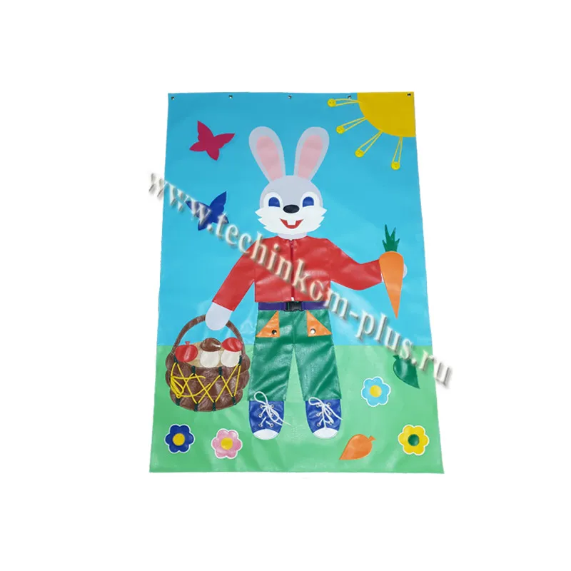 Дидактическийковрик крепится к стене с помощью люверсов, при желании его можно расположитьна столе или полу.