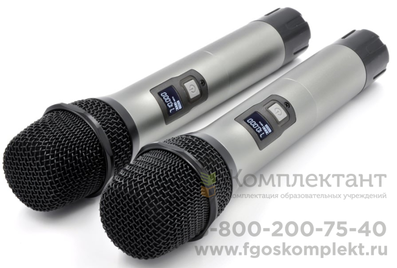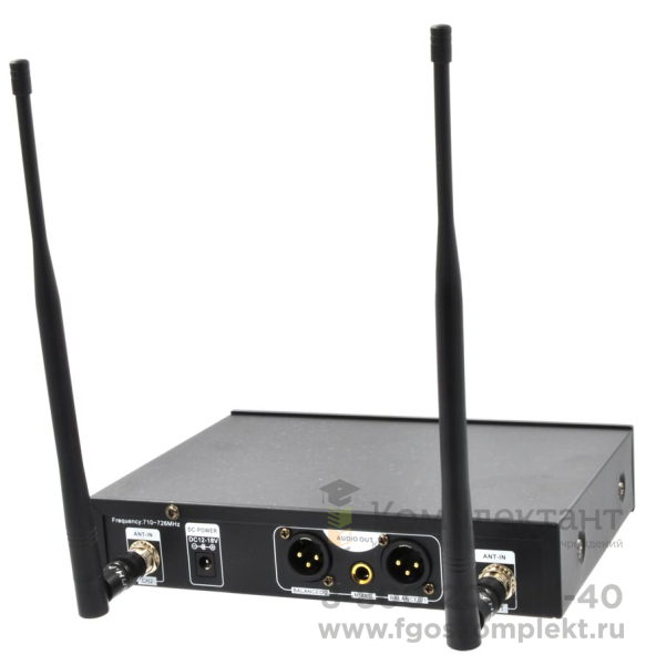 Инфракрасный порт для программирования. В комплекте поставки находятся (уточняйте при заказе) приемник, 2 ручных микрофона, кабель jack-jack, адаптер питания 12 В, батарейки AA 1,5В-4 шт, руководство пользователя, держатель микрофона—2 шт, силиконовое кольцо—2 шт.