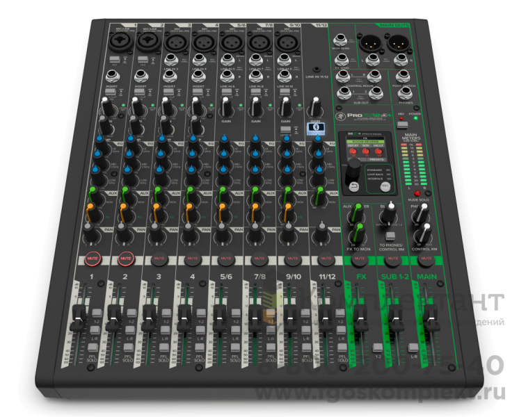 12-канальный аналоговый микшер с улучшенными эффектами, режимами записи по USB и известными микрофонными предусилителями Onyx по технологии Bluetooth