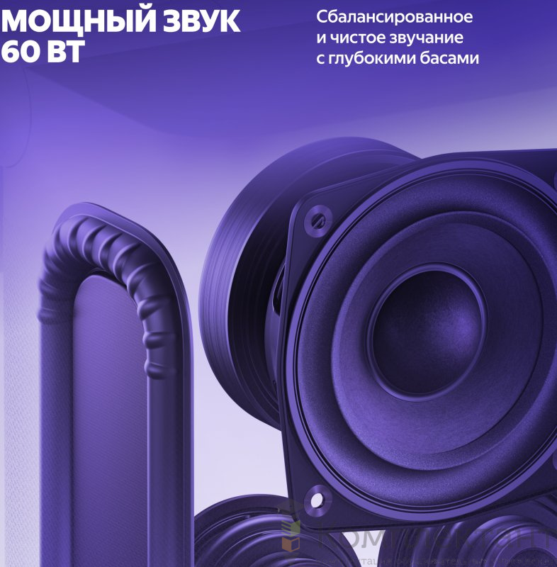 Мощное звучание: сочетание широкополосных и низкочастотного динамиков мощностью 60 Вт и встроенного сабвуфера обеспечивает впечатляюще мощный звук с глубокими басами.