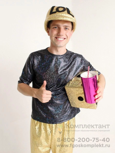 Кто из детей не любит кукол? Небольшие игрушки, спрятанные в пластиковых шариках, влюбили в себя множество малышей. Поэтому появление на празднике аниматора обрадует каждого ребёнка! Персонаж облачён в блестящий костюм из голографической ткани: он переливается и блестит на свету, создавая праздничную и весёлую атмосферу. Костюм для аниматора детально повторяет стилистику игрушек. Он такой же яркий, необычный и запоминающийся, как и все куклы.